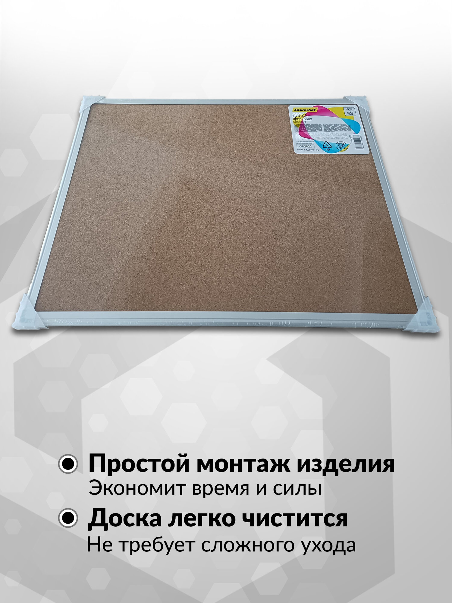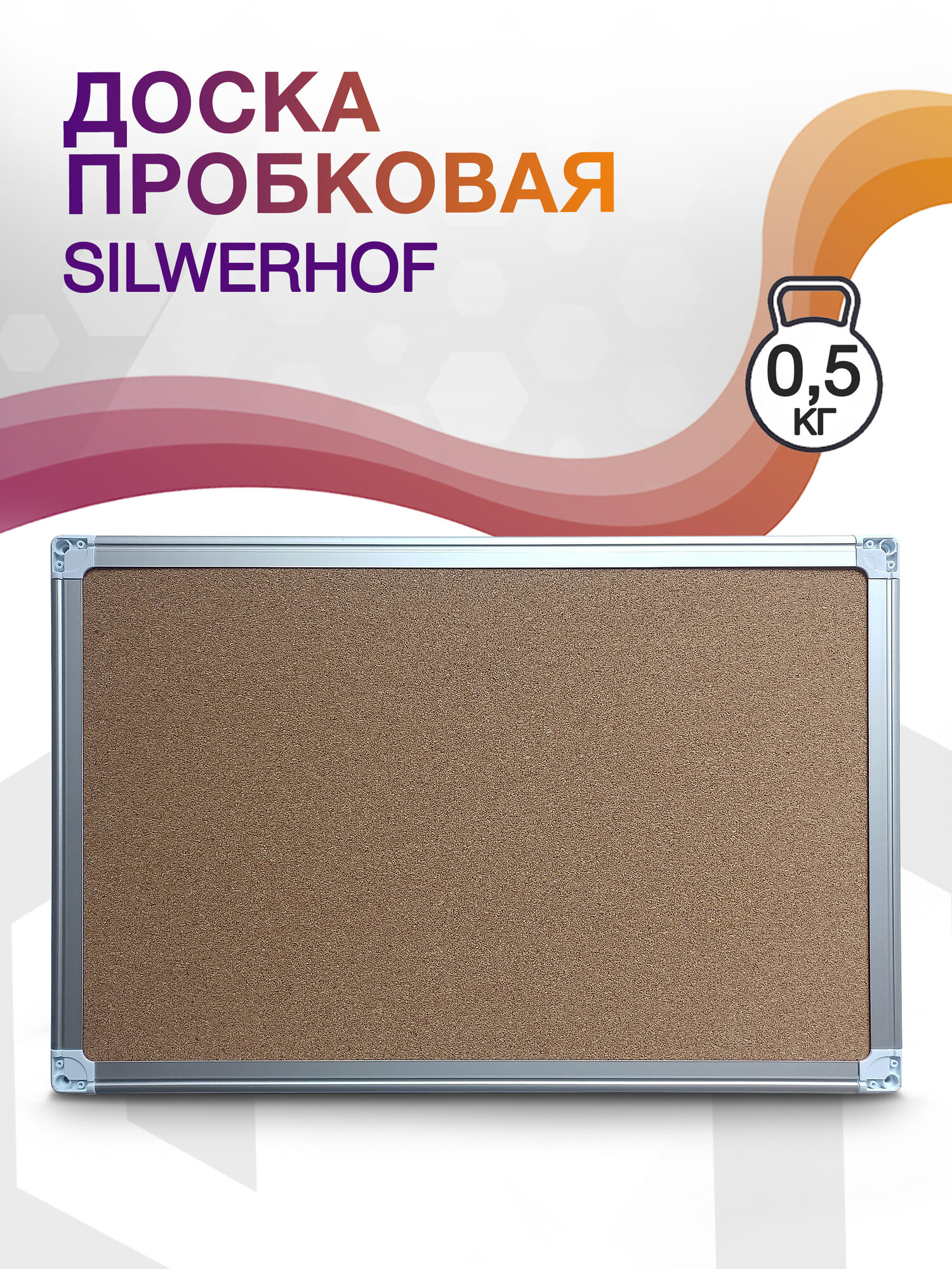 Доска пробковая Silwerhof, размер 45x60см, алюминиевая рама