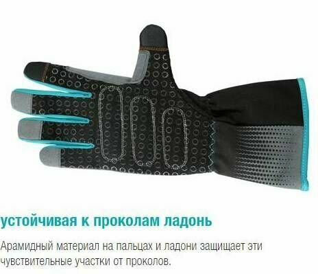 Перчатки для ухода за розами от GARDENA - это незаменимый помощник для садоводов и любителей роз. Они обеспечивают надежную защиту рук при работе с колючими растениями и позволяют с легкостью управлять смартфоном или планшетом без необходимости снимать перчатки.Перчатки изготовлены из качественных материалов: полиэстер, нейлон, полиуретан, арамид, хлопок и эластан. Это обеспечивает их прочность и устойчивость к проколам. В области запястья предусмотрена удобная застежка на липучке, что позволяет надежно зафиксировать перчатки на руке.Особенностью перчаток является функция Smart Mobile Touch на кончиках большого и указательного пальцев. Это позволяет управлять смартфоном или планшетом, не снимая перчаток.Перчатки имеют размер M и представлены в двух цветах: бирюзовом и черном. В упаковке вы найдете две пары перчаток.Перчатки для ухода за розами от GARDENA - это не только надежная защита рук, но и забота о вашем здоровье. Они соответствуют стандарту Oeko-Tex ® Standard 100, что подтверждает отсутствие вредных веществ в составе.Выбирая перчатки для ухода за розами от GARDENA, вы делаете ставку на качество, комфорт и безопасность.Состав перчаток:Полиэстер: 38%Нейлон: 32%Полиуретан: 16%Арамид: 8%Хлопок: 4%Эластан: 2%