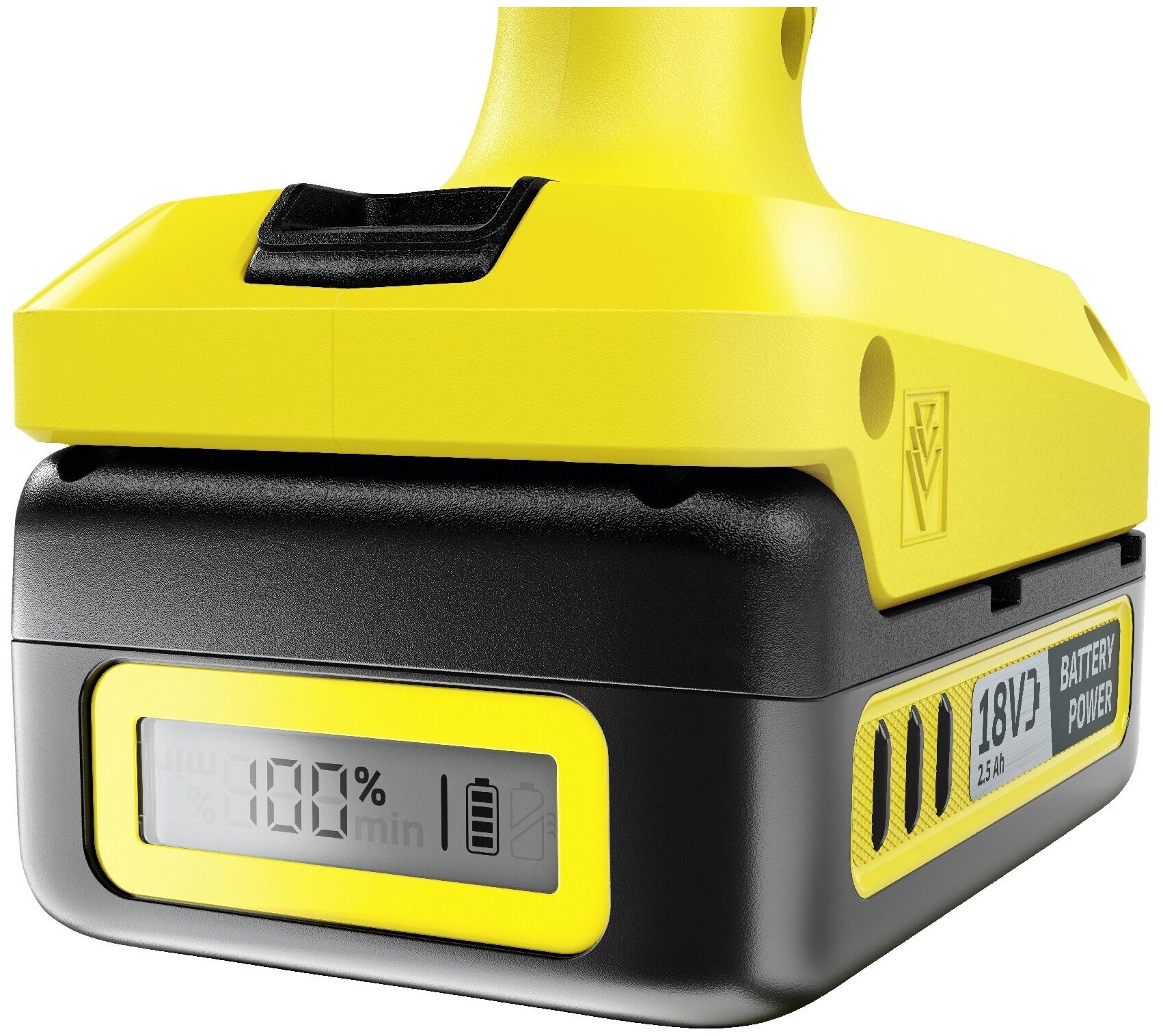 | Прочие особенности и свойства | Веерное сопло позволяет бережно очищать с его помощью садовую мебель, игрушки, мусорные контейнеры и многие другие поверхности и предметы, Встроенный фильтр для воды, Простота установки и замены аккумулятора, Давление 21 бар для легкого, мобильного и эффективного решения задач периодической уборки, Легко заменяемые сопла Quick Connect, 2 сопла для эффективной работы, Аккумулятор с технологией Real Time: отображение на ЖК-дисплее аккумулятора его емкости, остающегося времени работы или заряда |