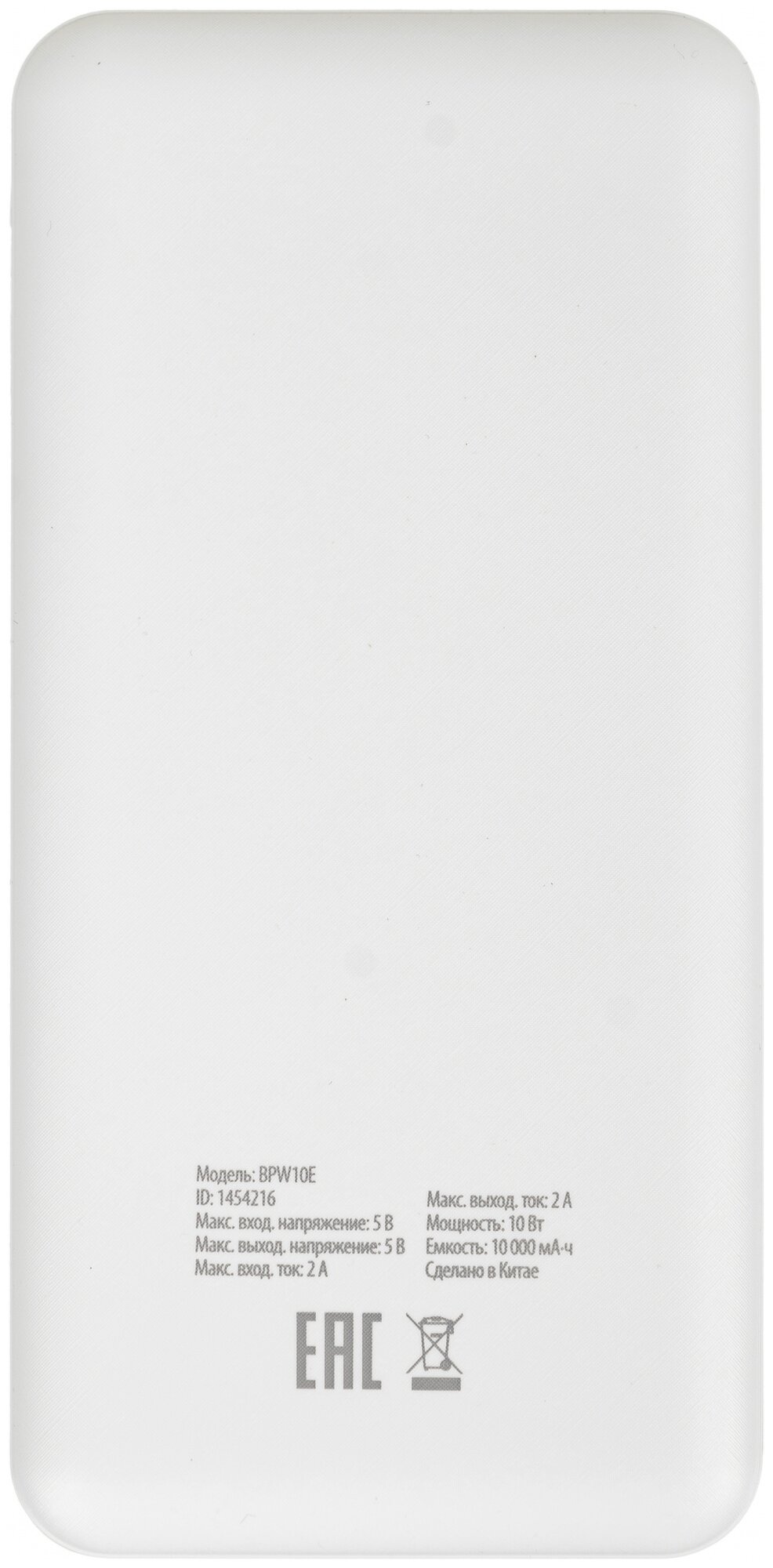 Модель: BPW10E 10000mAh 2A 2xUSB беспроводная зарядка белый (BPW10E10PWT)