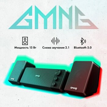 | Прочие особенности и свойства | Компактная настольная аудиосистема GMNG OK-450 2.1 – колонки + сабвуфер. Оригинальный дизайн, удобное расположение элементов управления на передней панели. Суммарная звуковая мощность 15 Вт, частотный диапазон от 20 Гц до 20 кГц оптимизирован для работы с компьютером. Динамики 64 мм (сабвуфер) и 51 мм (колонки). Аудиосистема поможет получить удовольствие от компьютерных игр, аудиофайлов или фильмов. Подключить внешние устройства можно через AUX, TF-карта и с помощью Bluetooth 5.0. Удобный блок управления на передней панели сабвуфера с независимым управлением высоких и низких частот, громкостью, индикатором работы. Дополнительные кнопки позволяют управлять композициями с внешних источников сигнала. Подключение к компьютеру – jack 3.5 мм, питание – от USB. |