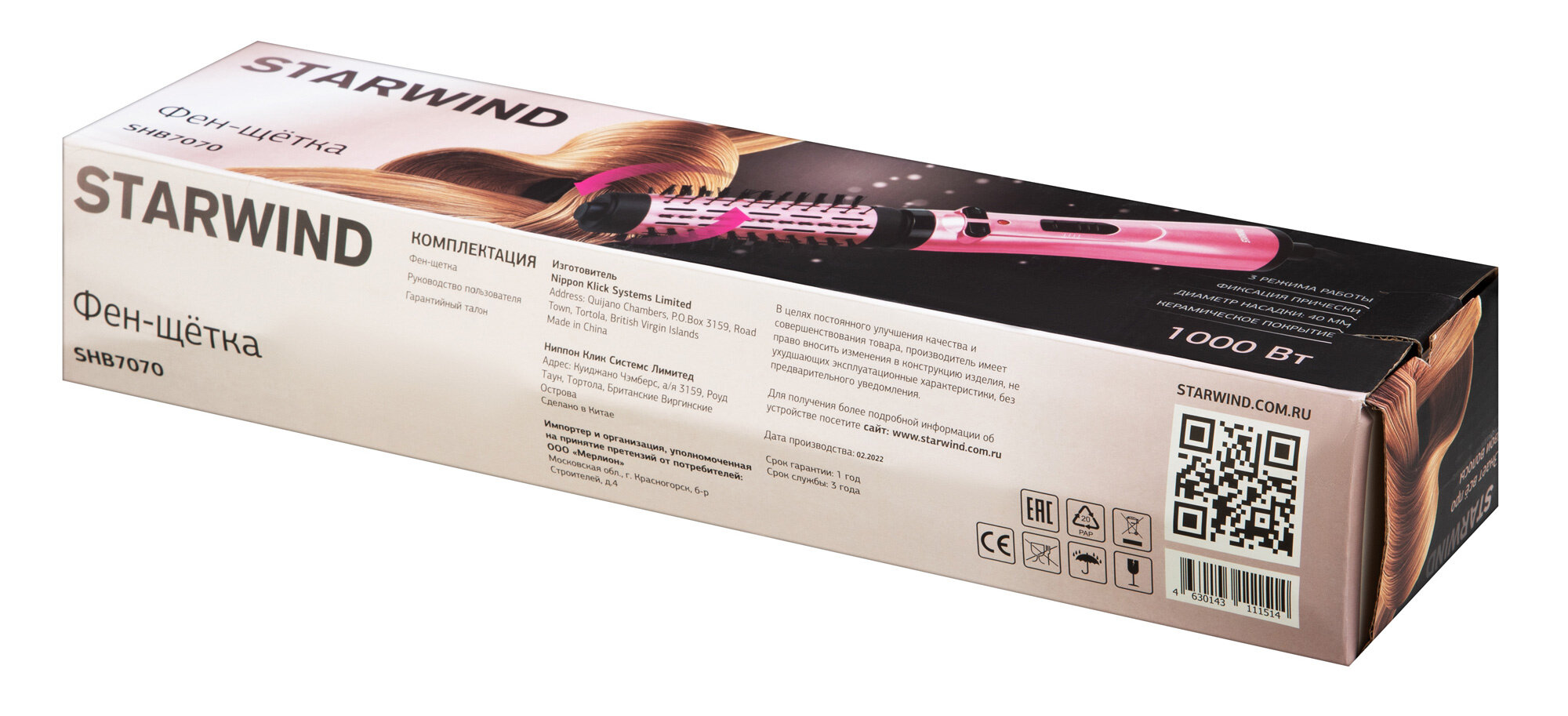 Фен-щетка Starwind SHB 7070 фиолетовый, мощность 1000Вт, насадок: 1шт