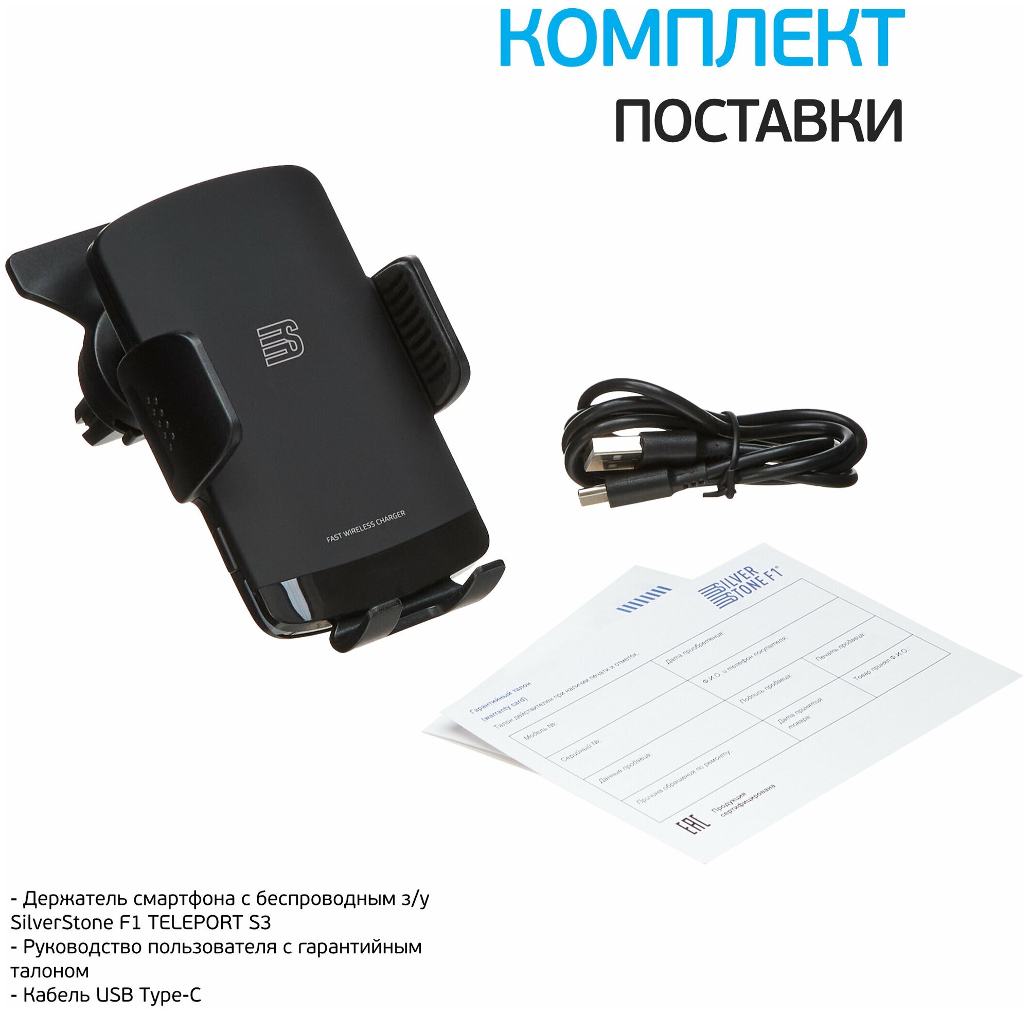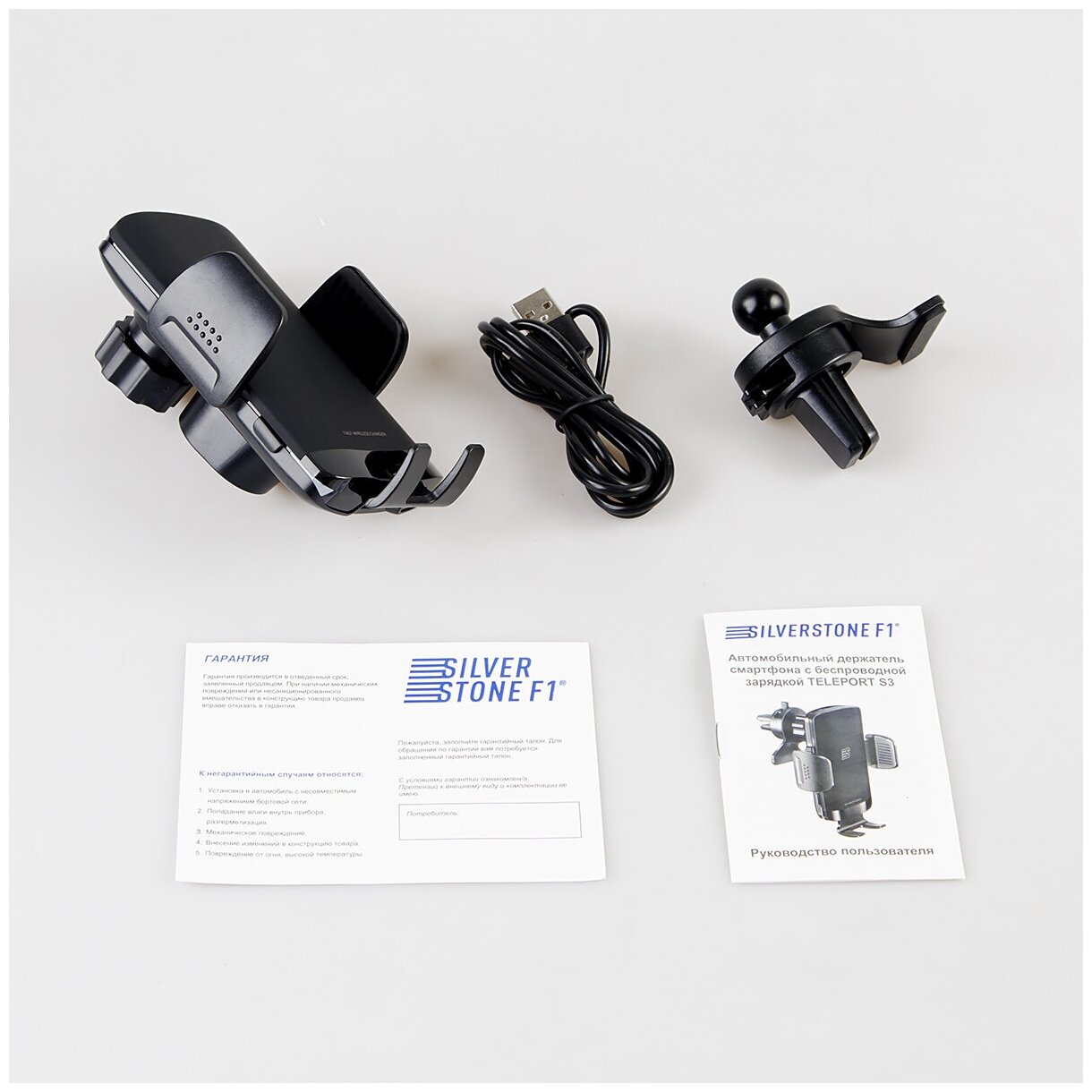 Держатель Silverstone F1 Teleport S3 беспров.з/у. черный/серый (TELEPORT-S3)