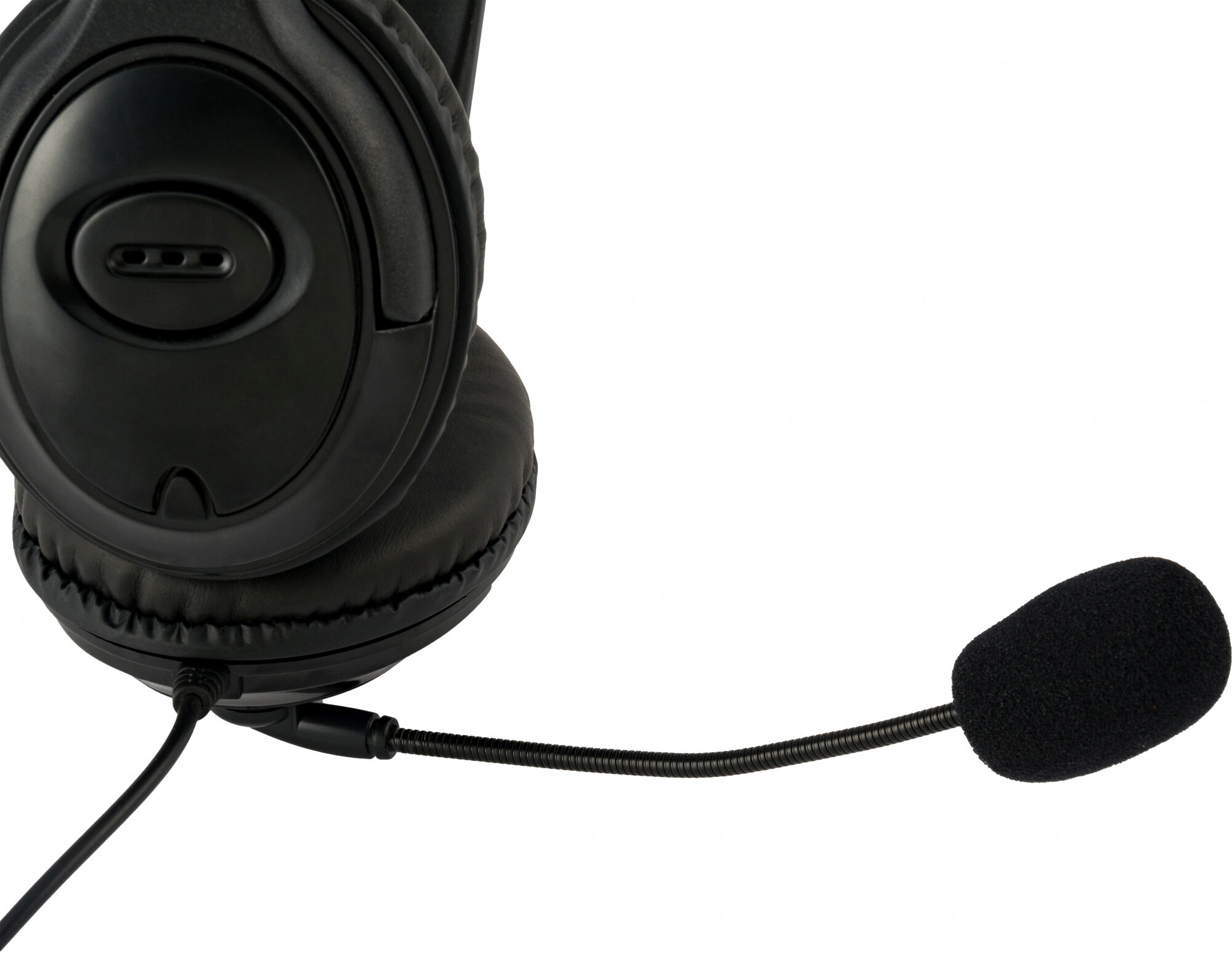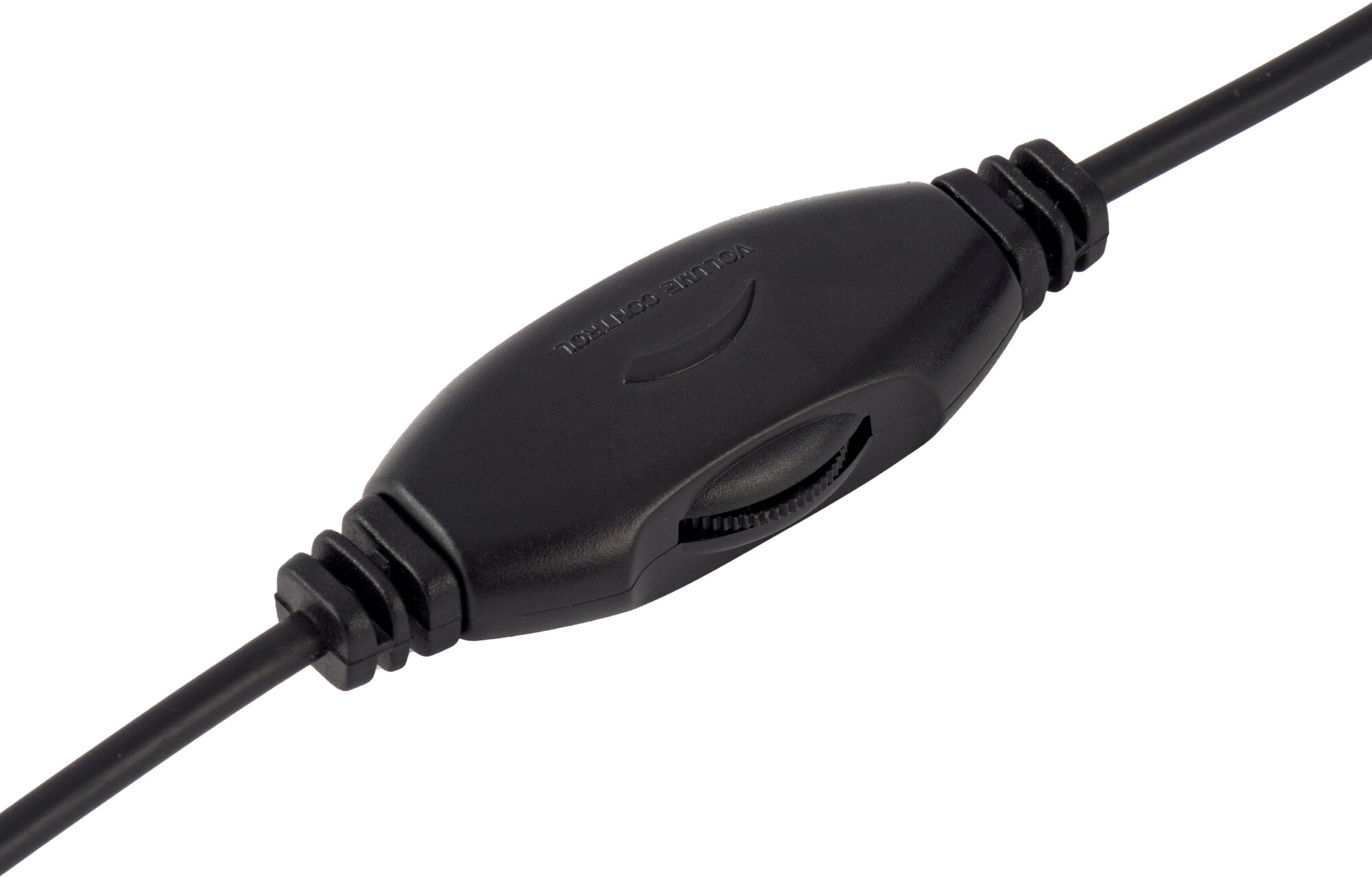 Оклик HS-M400 - проводная гарнитура с накладными амбушюрами и регулятором громкости на проводе.