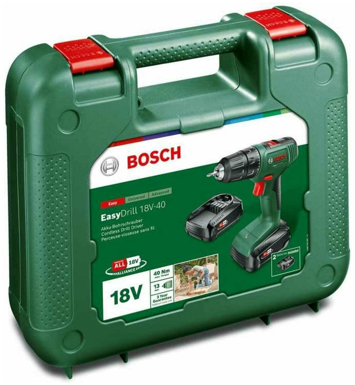 Дрель-шуруповерт Bosch EasyDrill 18V-40, патрон: быстрозажимной, питание от аккумулятора Li-Ion 18В, (кейс в комплекте) (06039D8005)