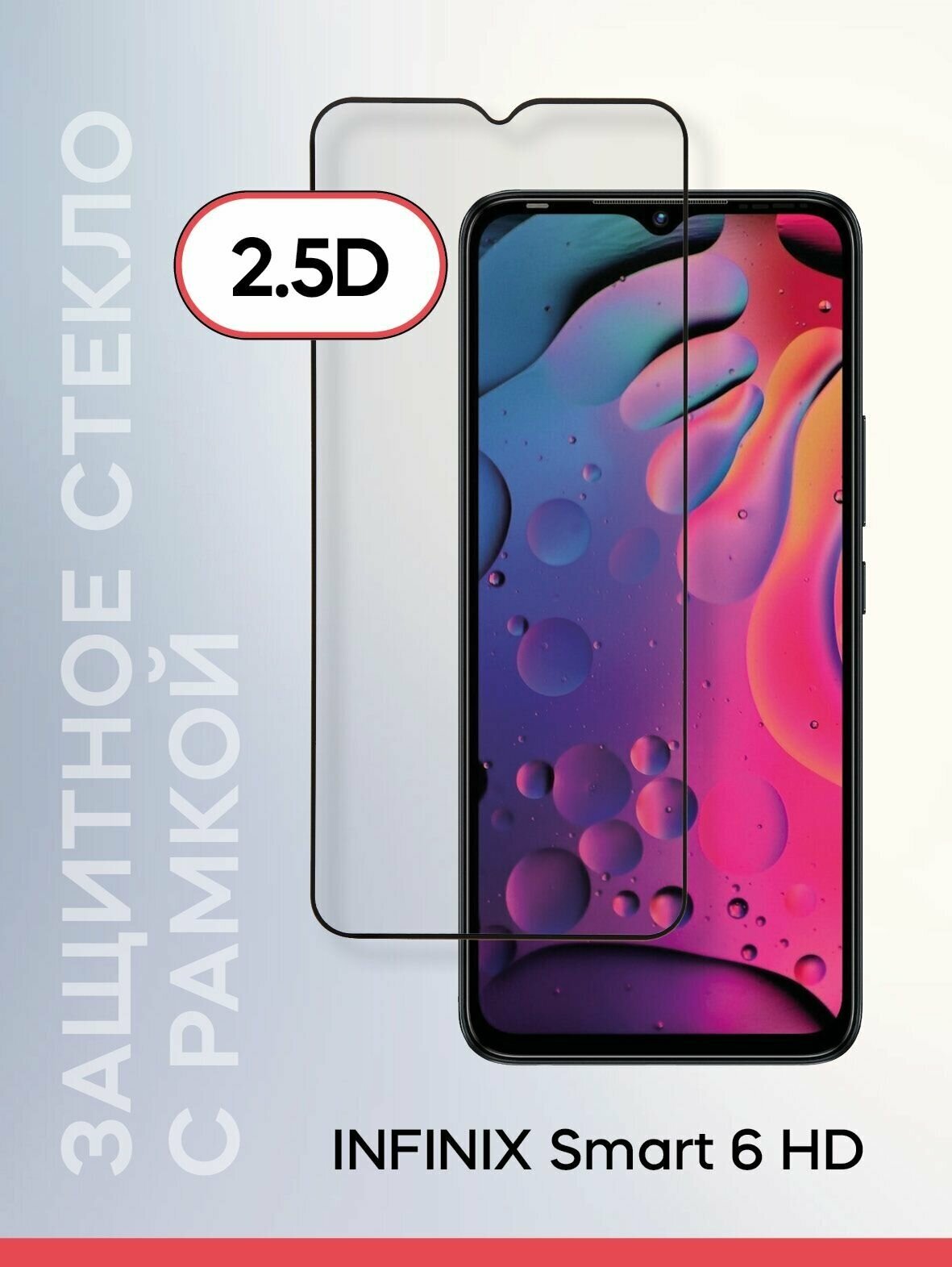 Защитное стекло Redline черный, 2.5D поверхность, для экрана Infinix Smart 6 NFC (УТ000028372)