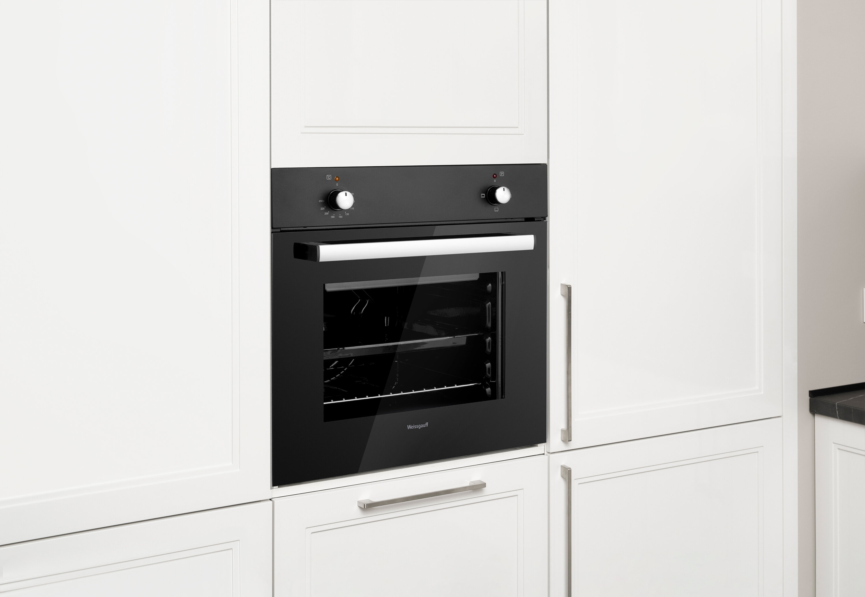Встраиваемый электрический духовой шкаф Weissgauff EOM 180 (333534) черного цвета оснащен двумя съемными стеклами на дверке. Это удобно при использовании и уходе. Духовой шкаф управляется поворачивающимися ручками с независимым подключением.