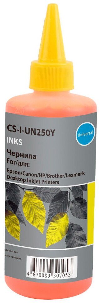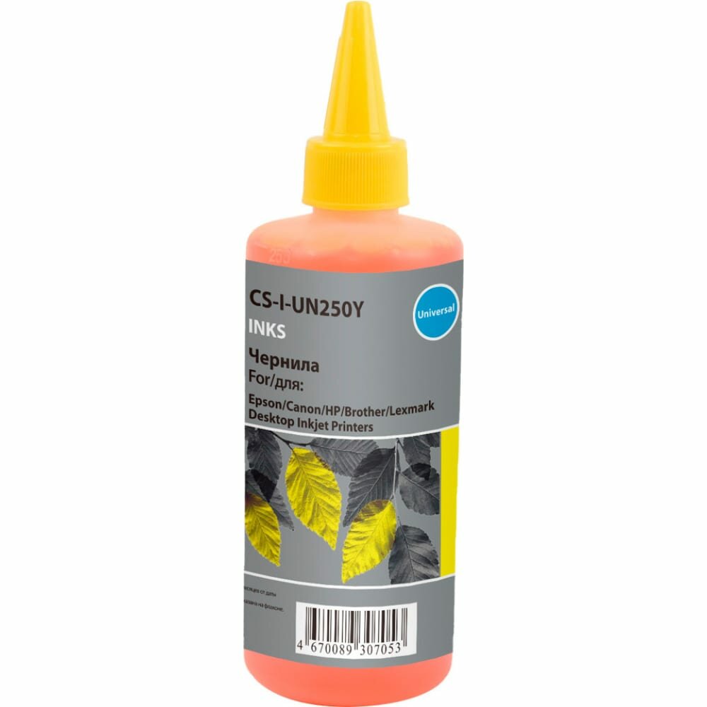 Чернила Cactus CS-I-Un250Y желтый, флаконов: 1, объём 250мл, для HP/Lexmark/Canon/Epson/Brother
