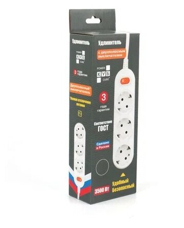 | Особенности | 3 розетки с заземлением Двухполюсный выключатель,Материал корпуса устойчив к механическим повреждениям и соответствует требованиям пожаробезопасности |