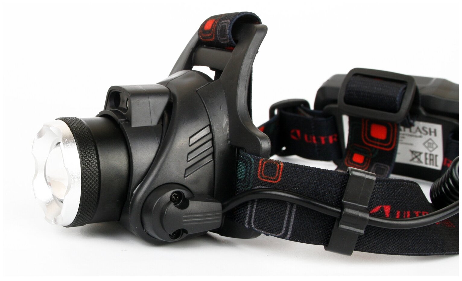 Ultraflash E1336 (фонарь налоб акк 3,7В, черный, 1LED, 4 Ватт, фокус, 2 ак 4 реж, сенсор, бокс)
