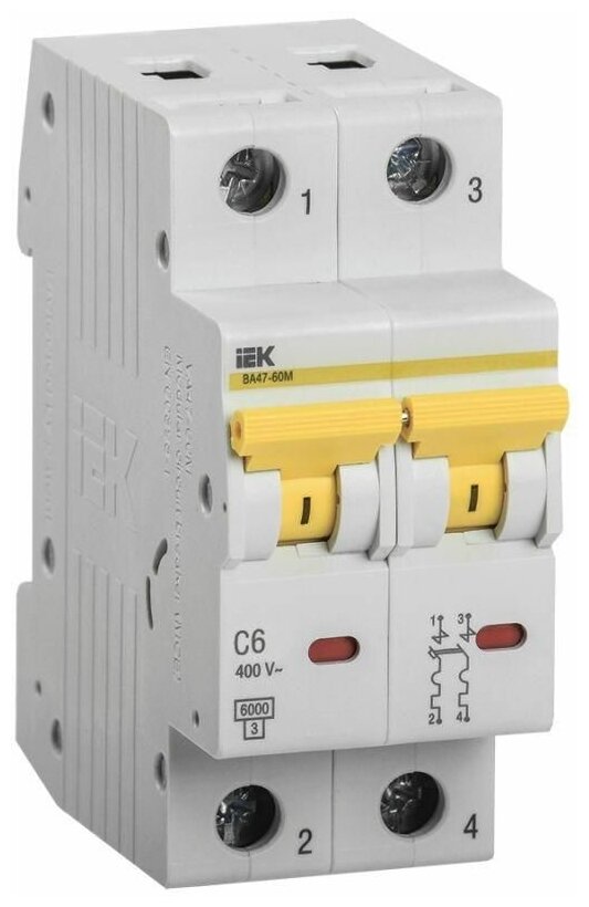 Выключатель автоматический IEK MVA31-2-006-C 6A тип C 6kA 2П 400В 2мод белый (упак.:1шт)
