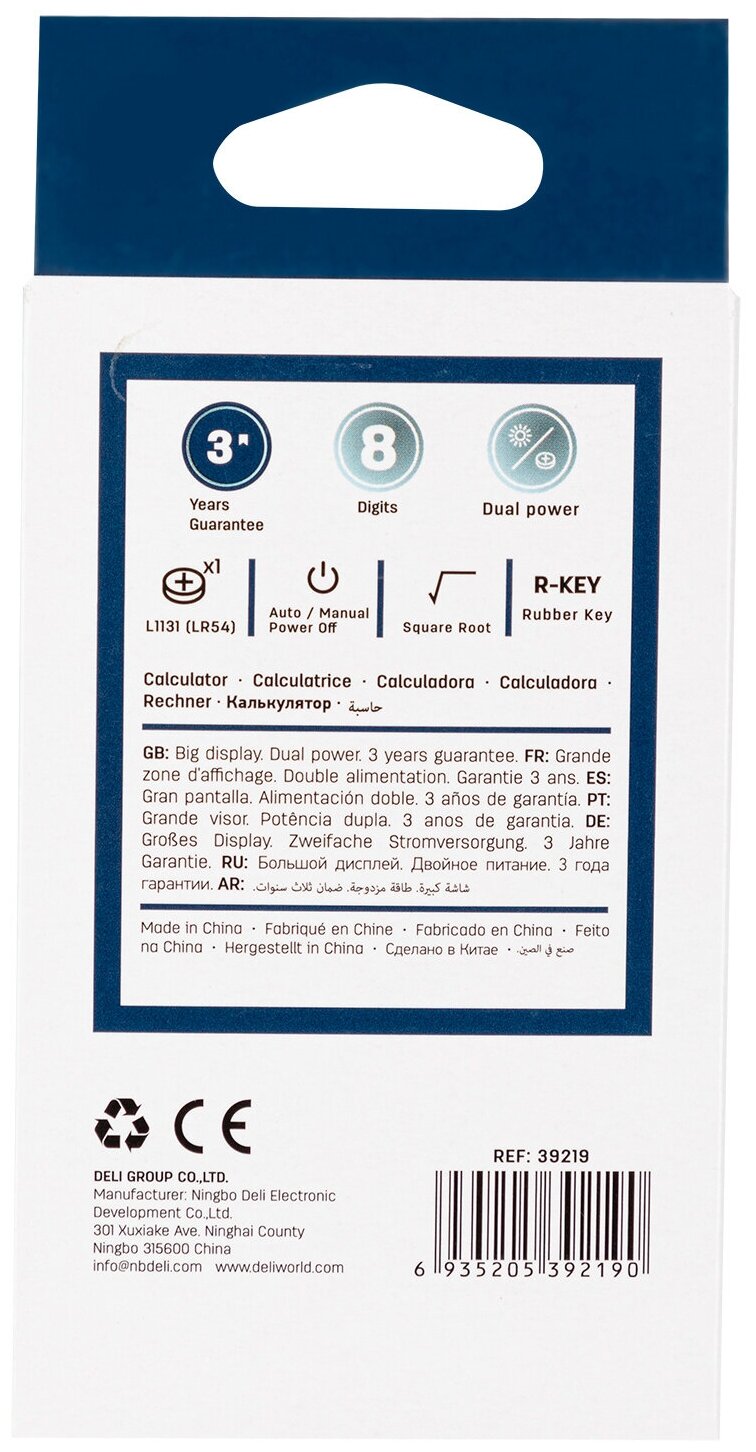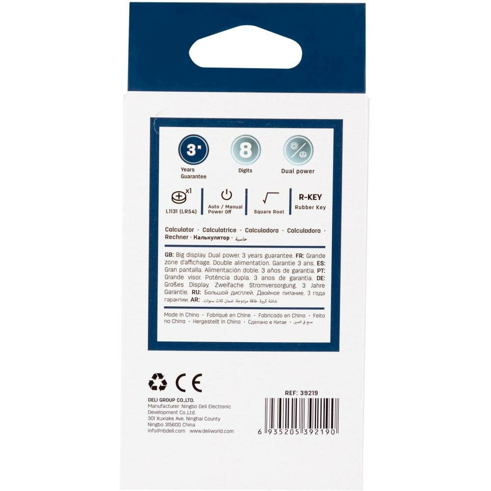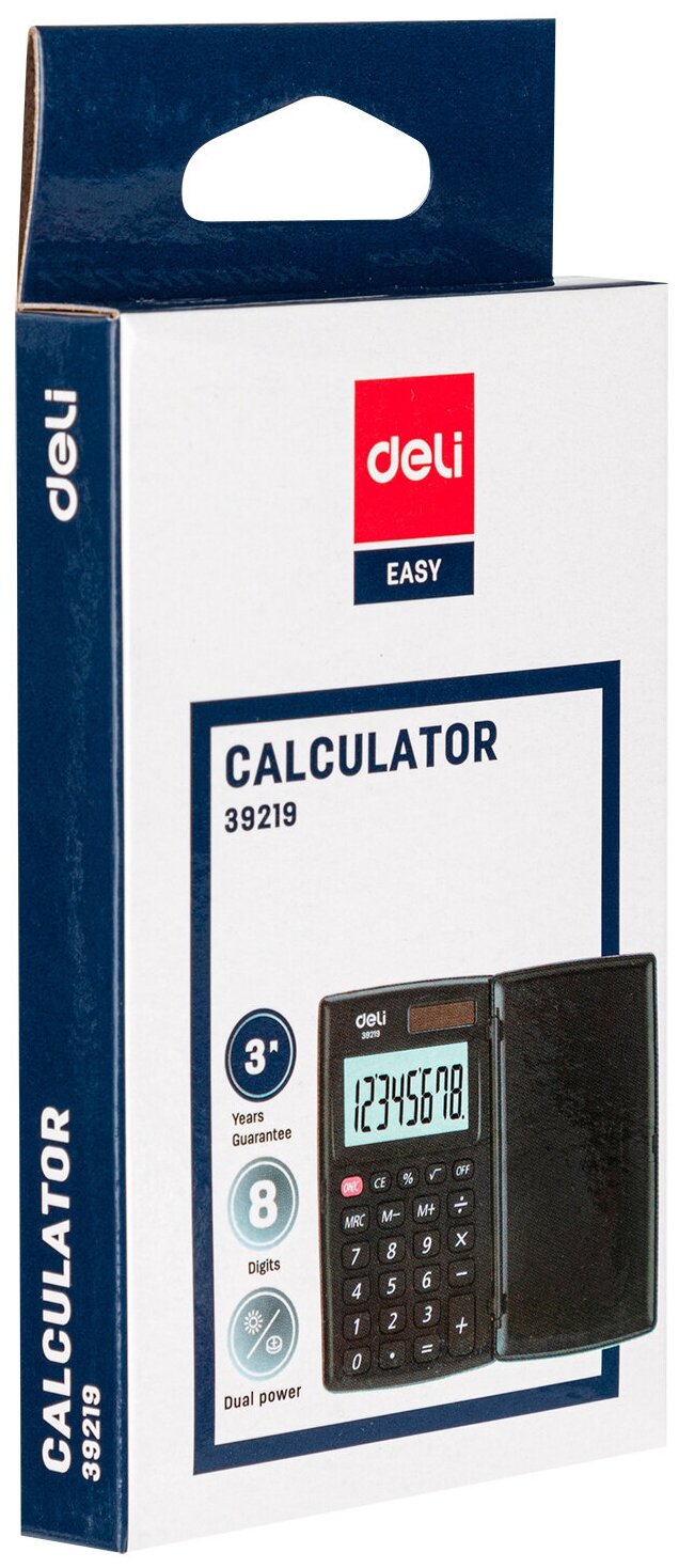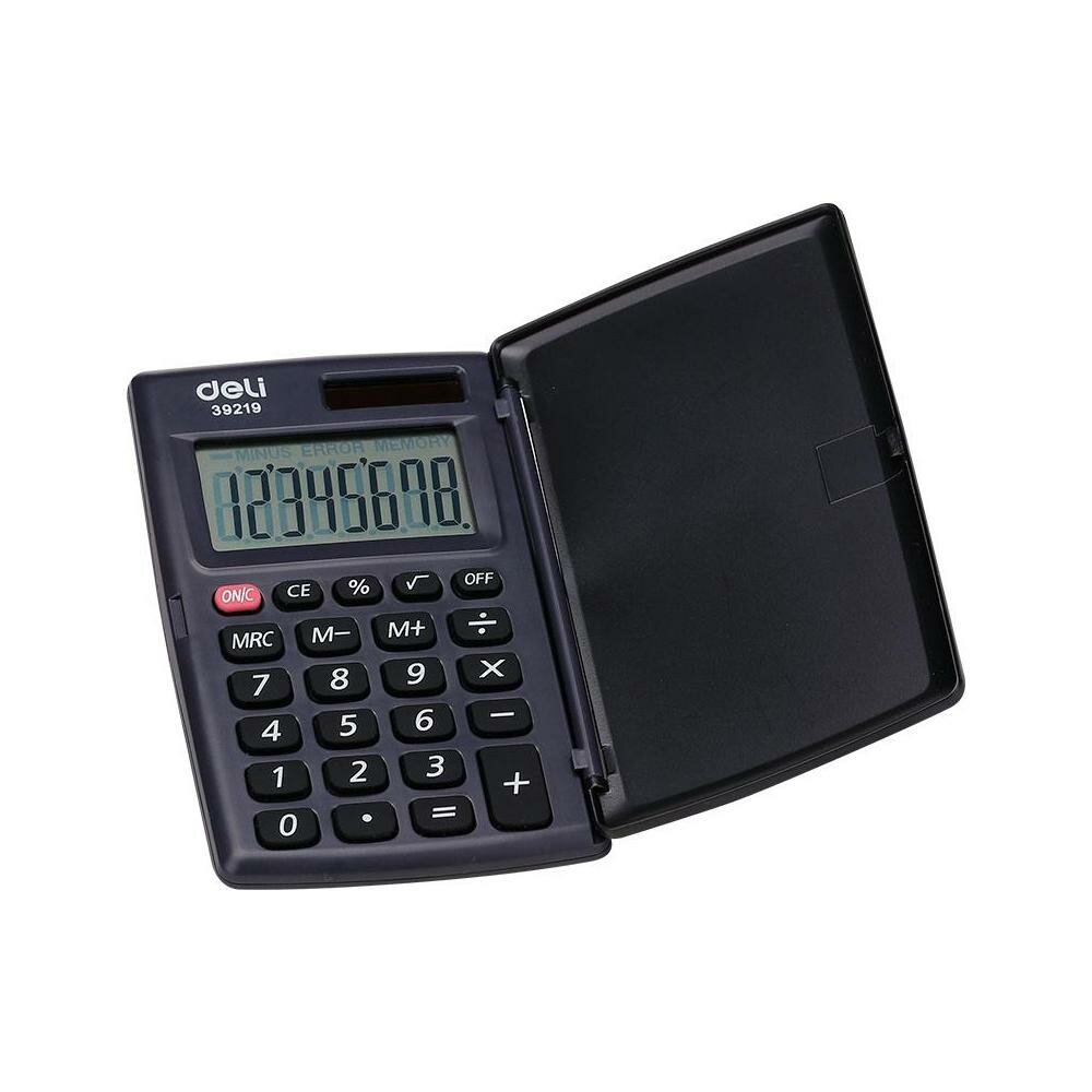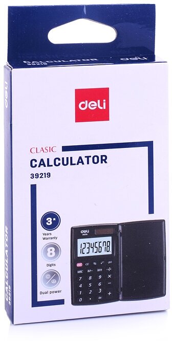 Калькулятор карманный Deli E39219 серый, дисплей: 8-разрядный, многострочный, монохромный, питание комбинированное LR54 х 1шт.
