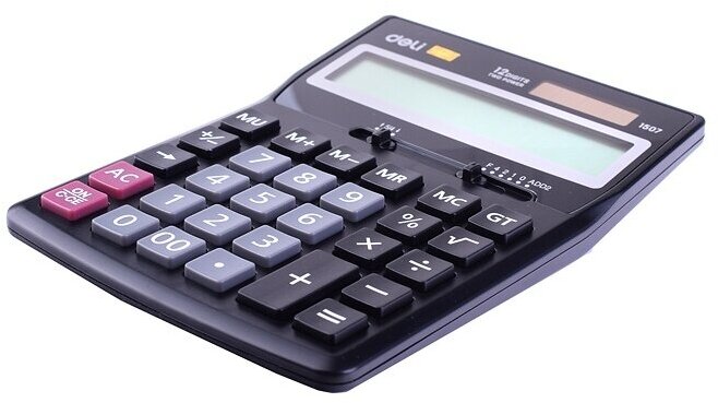 Калькулятор настольный Deli Smart E1507 черный, дисплей: 12-разрядный, однострочный, монохромный, питание комбинированное