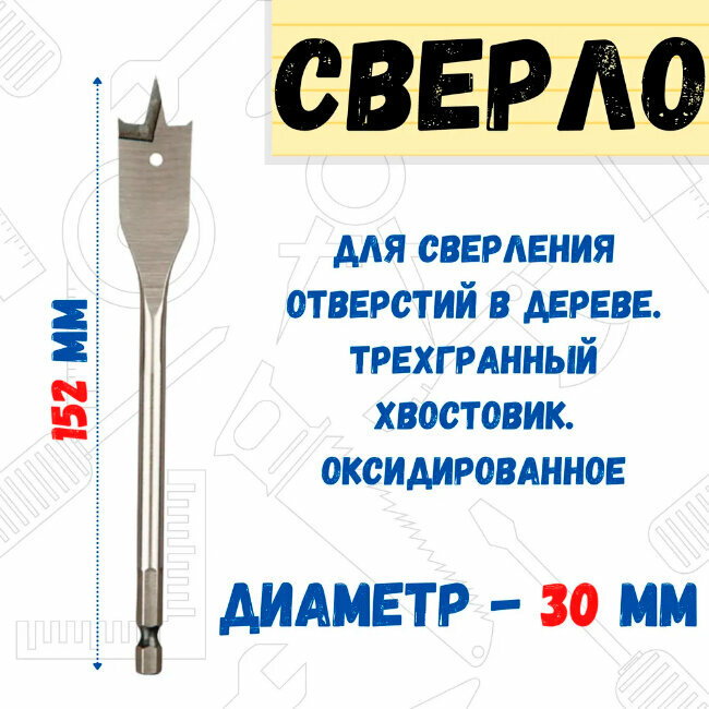 Для сверления отверстий в дереве. Трехгранный хвостовик не позволяет проворачиваться сверлу в патроне. Оксидированное.