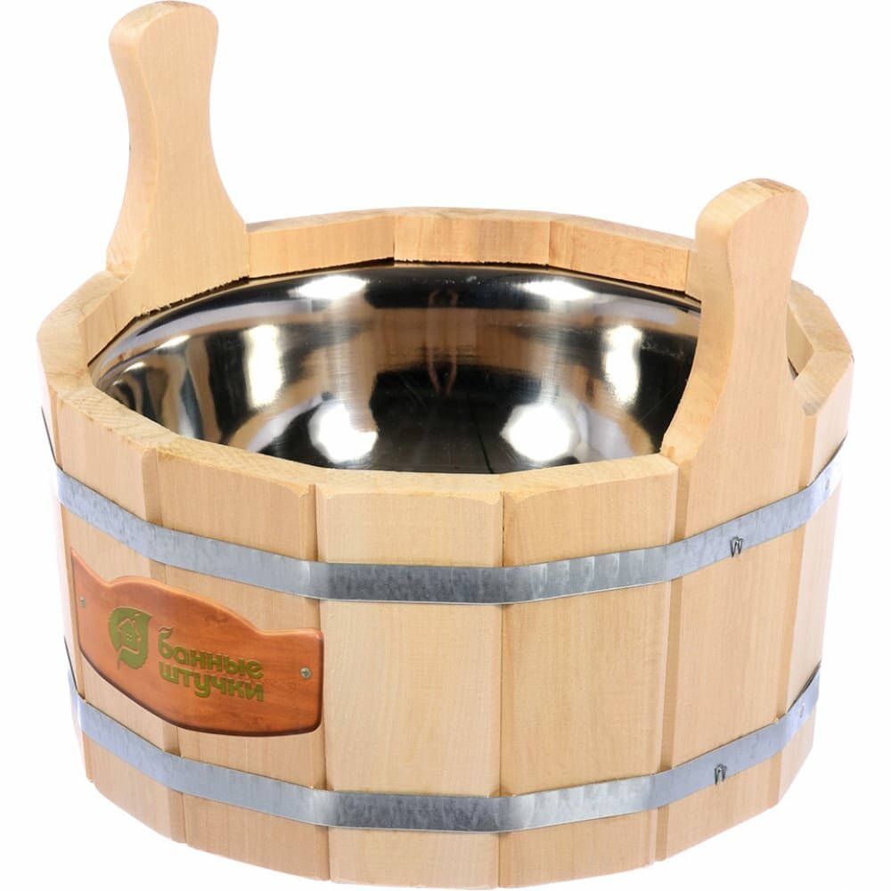 Ушат "Шайка" с нержавеющей вставкой, выполненный из липы, прекрасно подойдет для замачивания веника или других банных процедур. Ушат не портится от воды. Корпус ушата состоит из металлических обручей стянутых клепками. Для более удобного использования ушат имеет по бокам две небольшие ручки.Размер 31,5х31,5х25,5см. Вес 1,59кг.Выберите Ушат "шайка" 6,5л с нержавеющей вставкой "Банные штучки" в кор. по доступным ценам. Оформите заказ, и мы доставим его, как можно скорее.