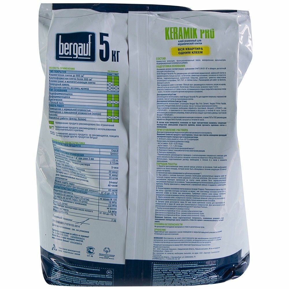 Клей плиточный усиленный (5кг) Keramik Pro Бергауф Bergauf (65371)