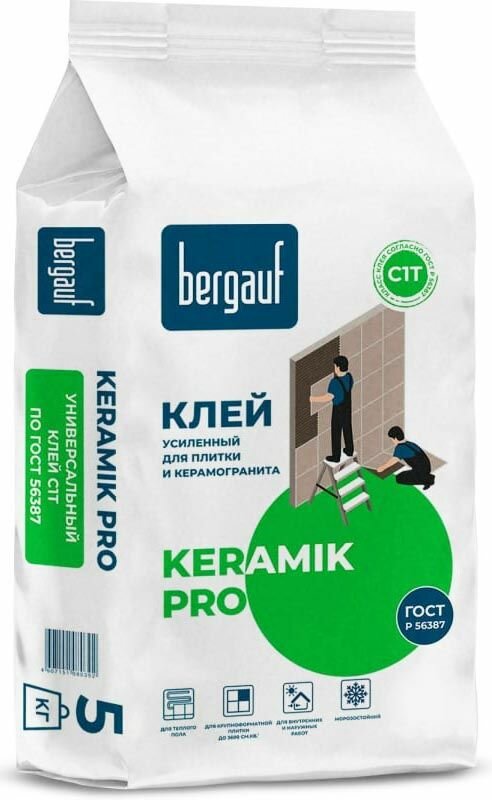 На сегодняшний день товар «Клей плиточный усиленный (5кг) Keramik Pro Бергауф Bergauf (65371)» можно купить с кешбеком в 1 магазине: Яндекс.Маркет