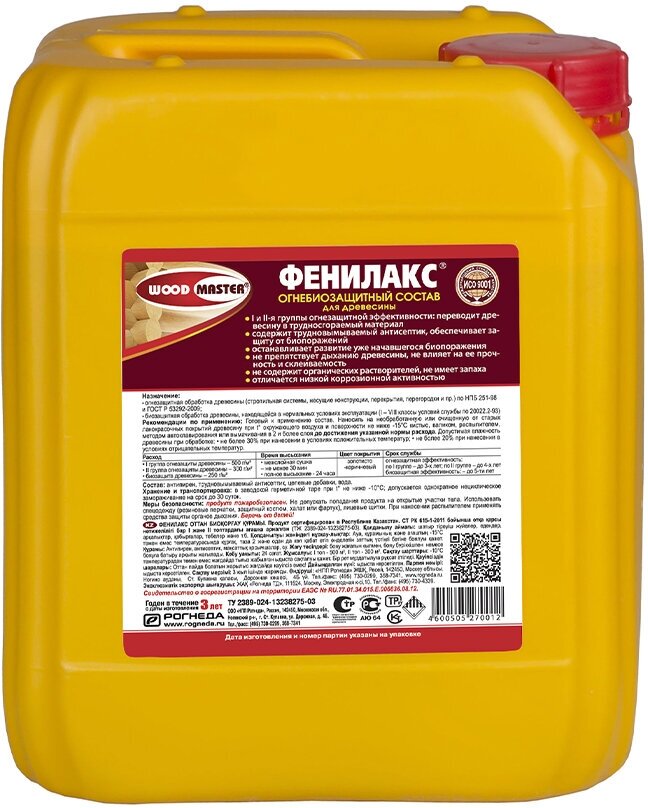 Огнебиозащита WOODMASTER Фенилакс золотисто-коричневый (6кг) (27001)