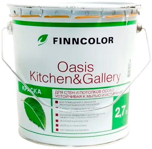 Краска для стен и потолков особо устойчивая к мытью OASIS KITCHEN@GALLERY A 7 (27л) FINNCOLOR OASIS KITCHEN&GALLERY 7