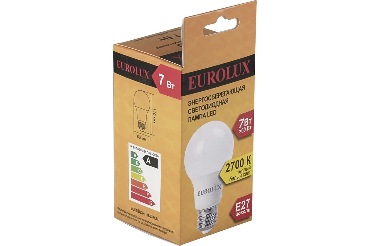 Лампа светодиодная Eurolux Е27 A60 7W 2700К LL-E-A60-7W-230-27K груша (76/2/11)