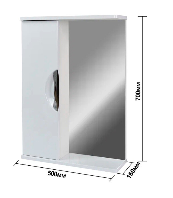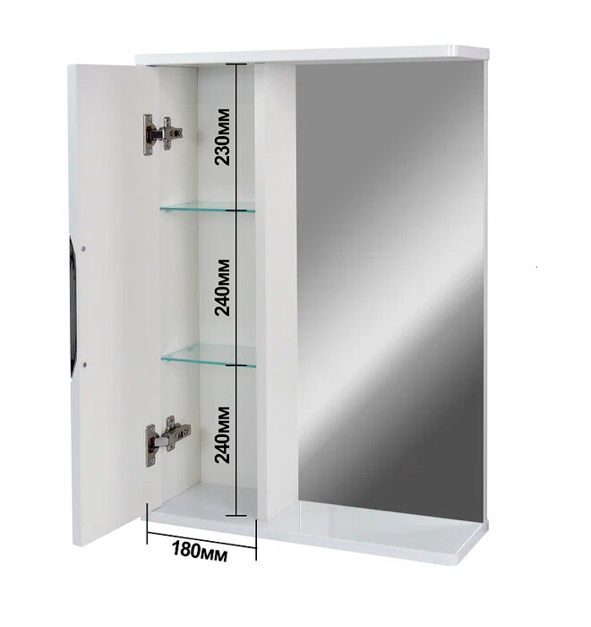 Зеркало-шкаф Афина 50 DORATIZ 2711.700 белый - это современная и удобная мебель для ванной комнаты. Гладкая белая поверхность фасадов и утопленные в нишах эргономичные ручки придают этой мебели лаконичный и изящный облик. Зеркало выполнено в виде подвесного зеркального шкафчика, где за зеркальными фасадами находятся полки для удобной организации хранения косметических средств и аксессуаров. Фасады мебели DORATIZ изготавливаются из качественного и высокоплотного влагостойкого МДФ. Обработка зеркального полотна предназначена для использования во влажных помещениях. Шкаф оснащен двумя стеклянными полками внутри. Плавное закрывание дверцы обеспечивают петли с доводчиком. Петли с доводчиком, влагостойкое МДФ, покрытие пленка. Мебель TM Doratiz изготавливается в Российской Федерации в соответствии с ГОСТом 16371-2014. Все материалы, используемые в производстве, соответствуют санитарно-эпидемиологическим стандартам, что подтверждается соответствующими сертификатами. Поставляется в собранном виде и готово к установке. Вам остается только снять защитную пленку.