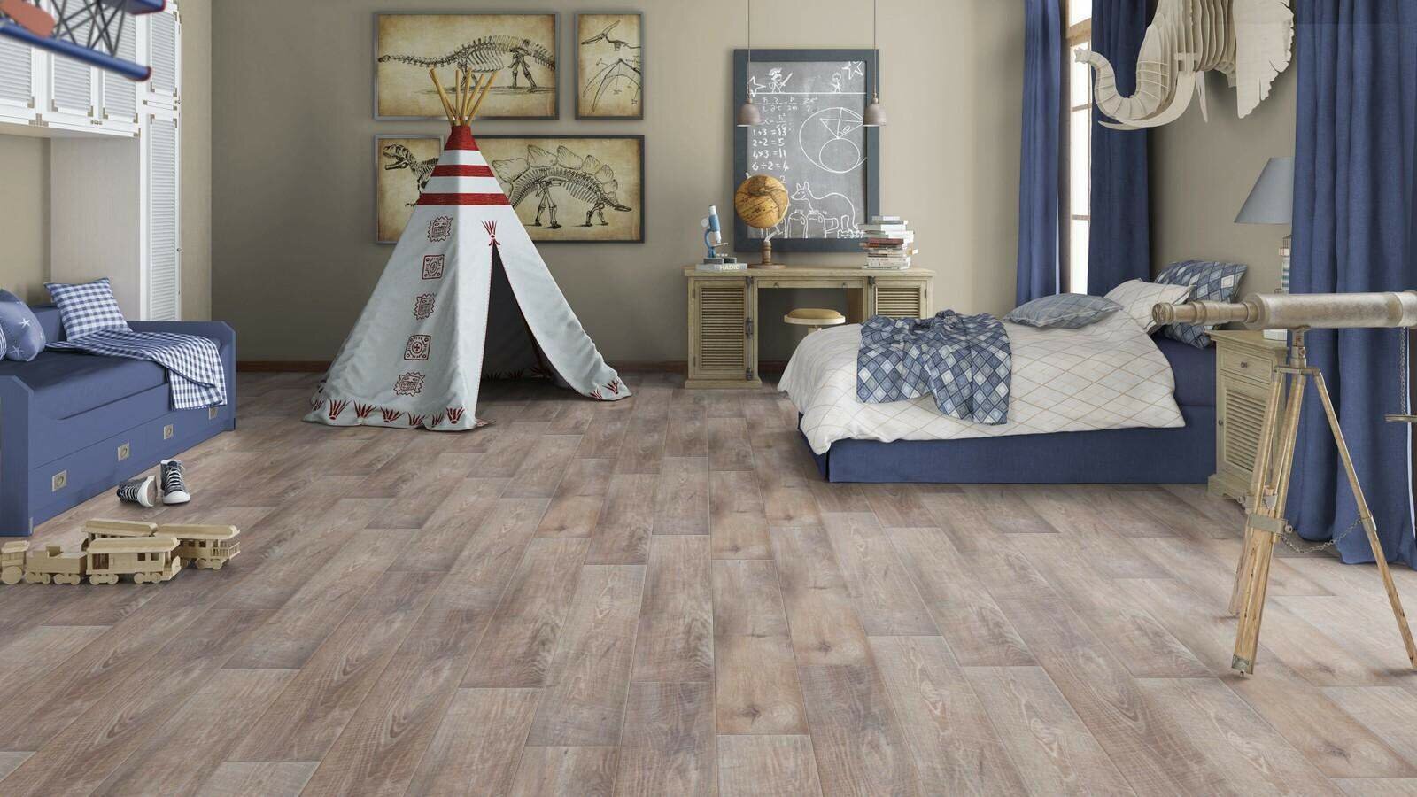Решила сама уложить ламинат в новой квартире опыт у меня уже был так что не пугалась. этот ламинат показался знакомым рабоала с ним раньше и знала, что он довольео прост в укладке. плюс, выбрала его за интересный дизайн. процесс прошел гладко никаких особых сложностей не возникло и я осталась довольна результатом, пол смотрится стильно и аккуратно, приятно на негго смотреть и ходить. Уверена, что он прослужит долго, и радуюсь, что сделала выбор именно в его пользу. теперь в комнате стало уютнее, и завершение ремонта тоже радует,