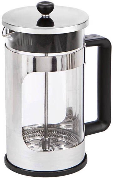 Объем 1000мл; материал боросиликатное стекло, нержавеющая сталь, пластик. Френч-пресс изготовлен из жаропрочного боросиликатного стекла, с фильтрующим поршнем из нержавеющей стали, пластиковая ручка и крышка хром. Подходит для заваривания кофе и чая. Пос