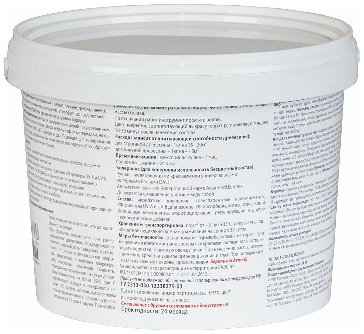 Колеровка машинная бесцветный – по Колеровочной карте «AКВАТЕКС&EUROTEX»
