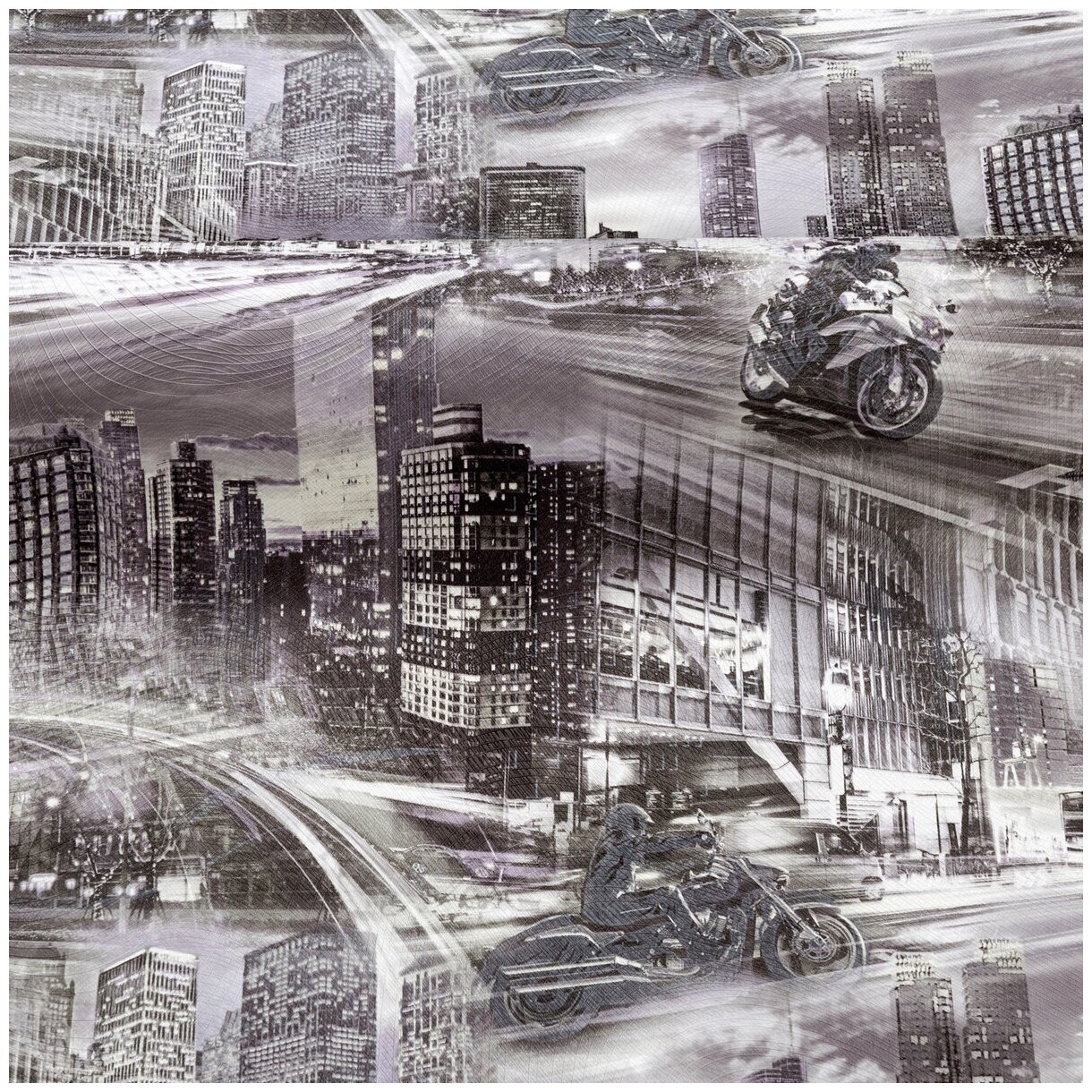Скорость, свист ветра и чувство безграничной свободы, когда мчишься вдаль по ночному шоссе. Этот выбор тех, кто не боится рисковать и верит в свою удачу. Мотоцикл – это настоящая религия, стиль жизни и воплощение своего внутреннего Я. Почувствуйте себя героем ночных улиц, вдохновившись коллекцией обоев Motorbike.Ночная тема городского пейзажа в стиле нуар, где преобладают угольные, темно-серые, пепельные и стальные оттенки, создает индивидуальность – это придется по душе тинейджерам и всем, кто любит необычное в дизайне.Художественная «изюминка» коллекции – светящиеся в темноте мотоциклы и огни зданий, которые позволят вспомнить сюжет ночного приключения, когда в комнате погаснет свет. Графичная манера подчеркивает выразительность контуров, делая рисунок контрастным. Залитые светом перспективы городских кварталов и авеню сливаются в расплывчатую динамическую картинку. Благодаря волнистому тактильному рельефу фона обои приобретают особенный шарм.Обои Motorbike можно использовать в современных интерьерах или для акцентной стены в подростковой комнате, где основной рисунок создаст неповторимый образ, а фоны визуально уравновесят его.