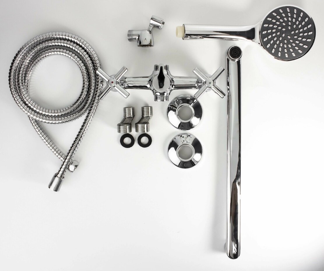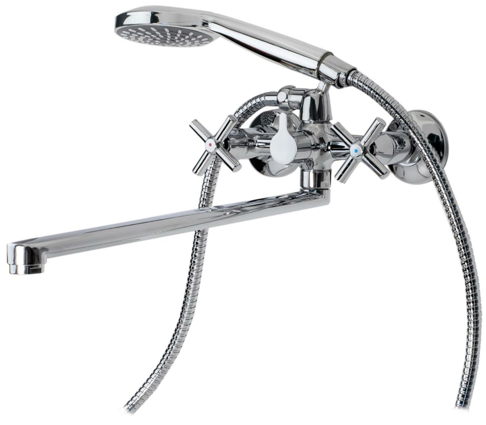 Поворотный излив 350 мм, может быть использован как для ванны, так и для раковины. Механический флажковый переключатель обеспечивает бесперебойную подачу воды из душевой лейки, независимо от давления в водонапорной системе.