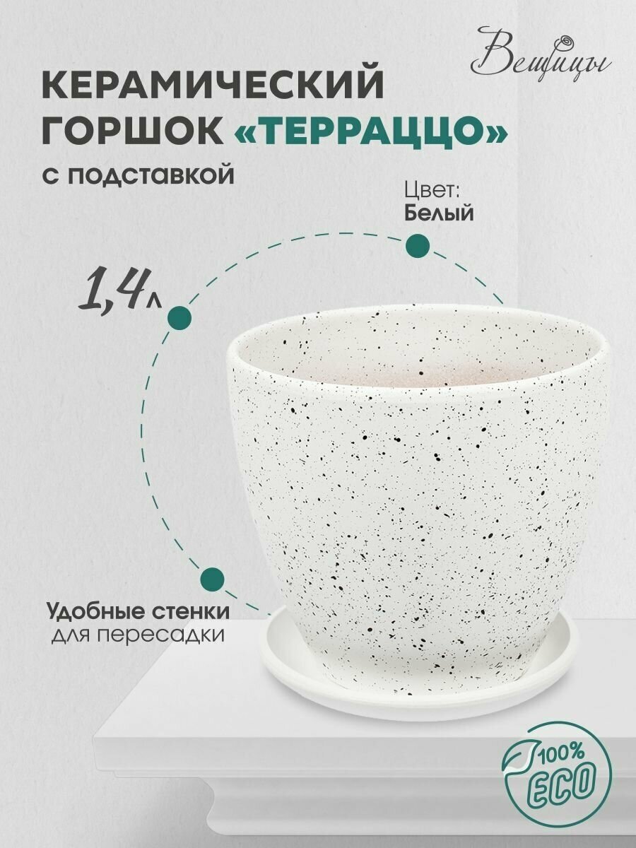 Сервис сравнения цен СкидкаГИД предлагает сравнить цены на товар «Кашпо керамическое Терраццо с подставкой 14 л. D135 белое ВеЩицы (BH-93-1)»