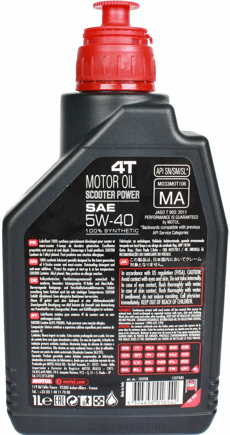 Моторное мото масло MOTUL Scooter Power 4T 5W-40 1 л 105958