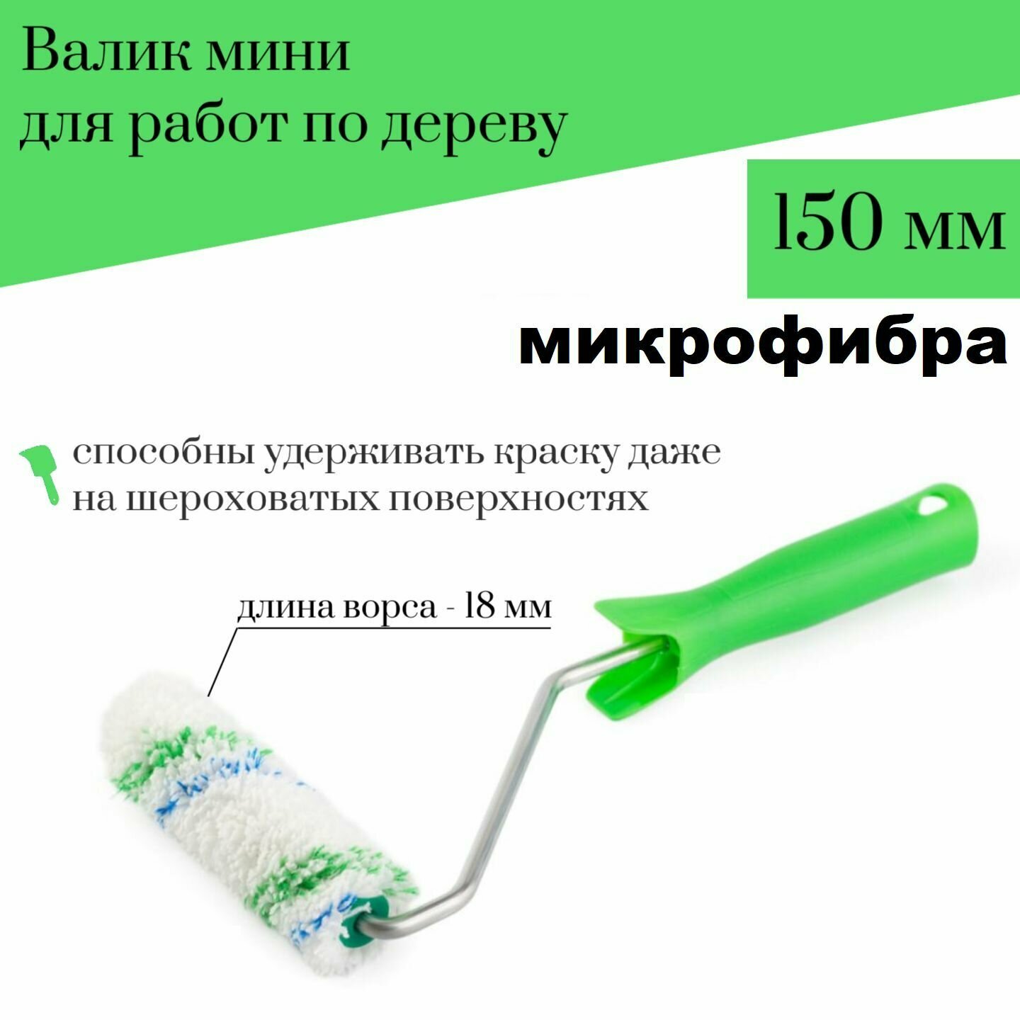 Минивалик малярный с ручкой АКОР для работ по дереву микрофибра ворс 12мм 150мм (50430150)