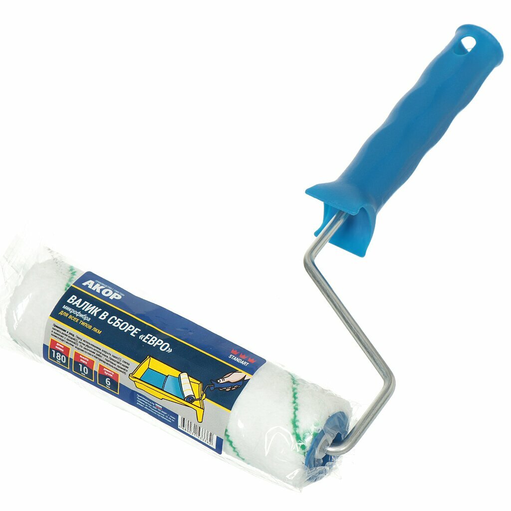 Валик малярный с ручкой АКОР ЕВРО микрофибра полиэстер 180мм 6мм (24135618)
