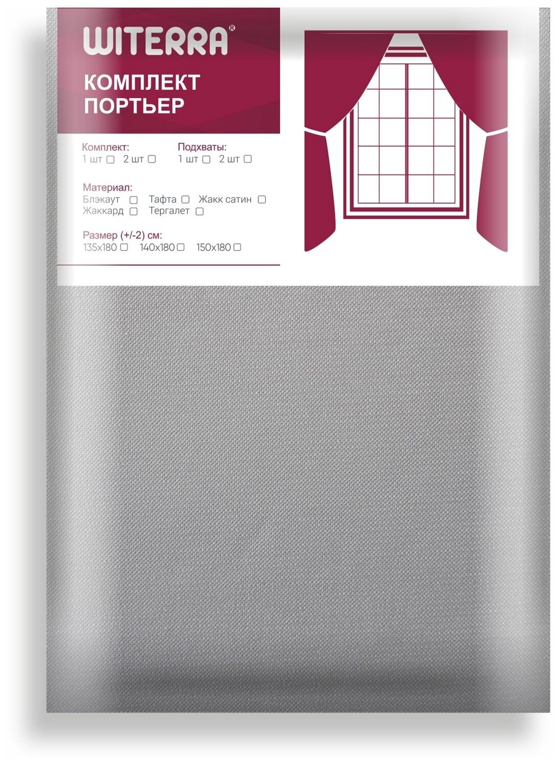 Штора готовая портьерная Witerra жаккард двусторонний 190х275см (1шт) серый 100048