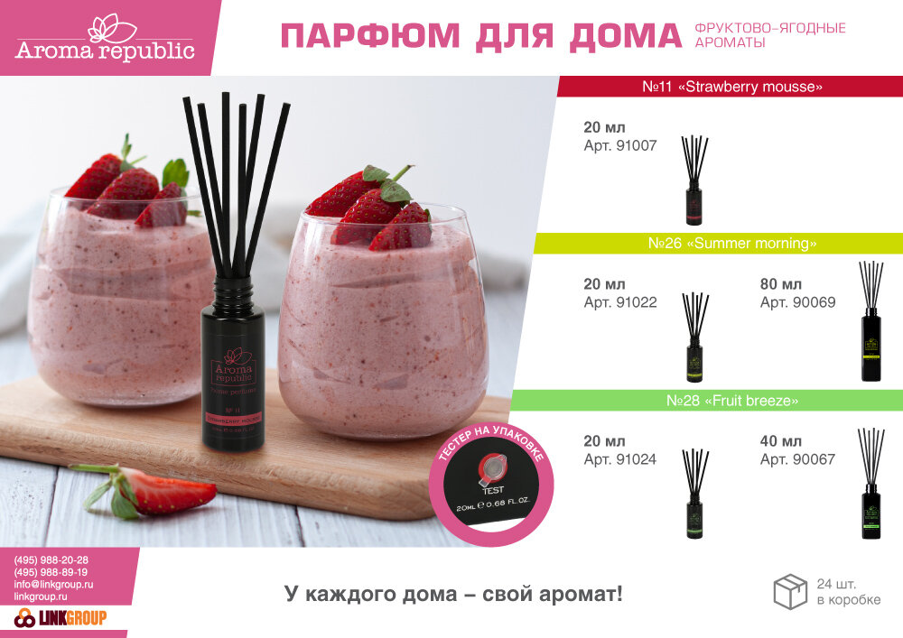 На сегодняшний день товар «Диффузор ароматический Aroma republic Strawberry mousse 20мл (91007)» можно купить с кешбеком в 1 магазине: Яндекс.Маркет