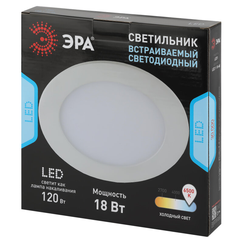 Светильник встраиваемый ЭРА LED 18W 220V 6500K круглый 1186K/1