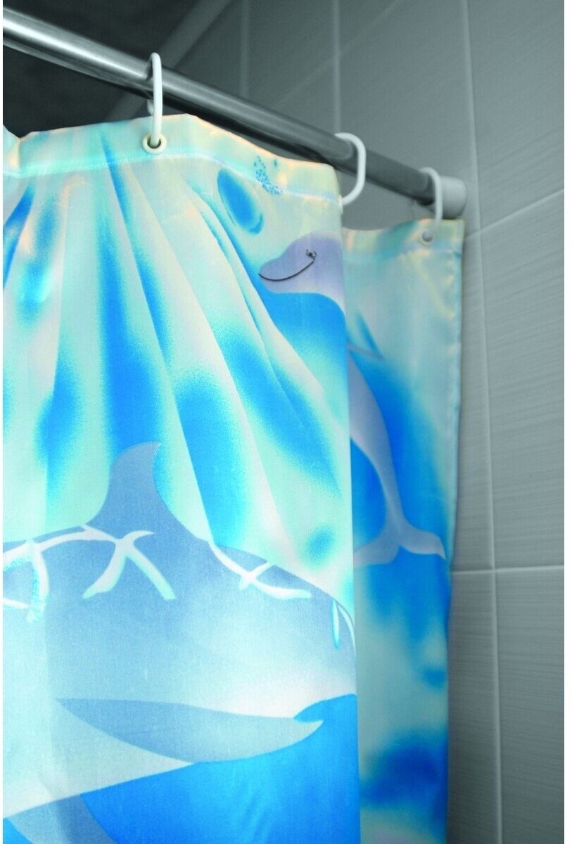 Шторка для ванной Аквалиния (020А-02) дельфины Голубые дельфины