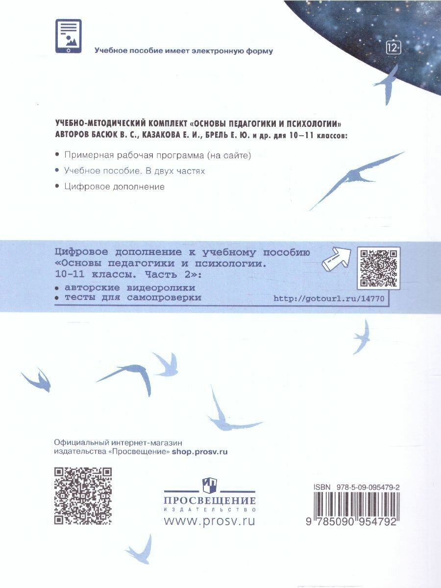 Основы педагогики и психологии. 10-11 классы. Учебное пособие. В 2-х частях (Басюк В.С.; Казакова Е.И.; Брель Е.Ю.); Просвещение, 2023