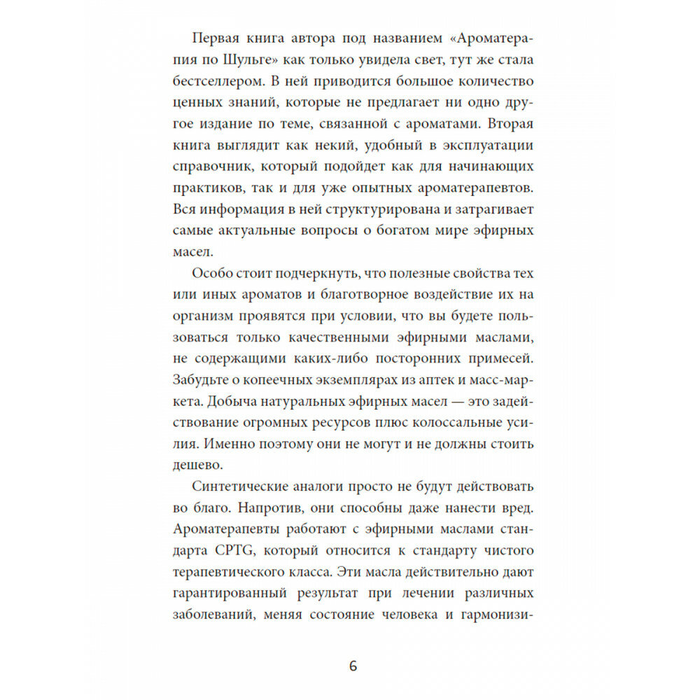 Это самый ожидаемый каталог по эфирным маслам от топового эксперта. Во второй книге серии "Ароматерапия по Шульге" собрана наиболее полная информация по свойствам и применению популярных эфирных масел. Перед вами подробное, систематизированное изложение материала в легком для усвоения стиле, которым отличается автор. Обилие примеров из практики, развернутое описание и научное обоснование эффективности каждого из эфиров делают данную книгу универсальным руководством как для начинающих практиков, так и для опытных ароматерапевтов. Если вы только открываете для себя мир эфирных масел или уже знакомы с ним и хотите усовершенствовать свои навыки, то эта книга для вас. Также она станет идеальным дополнением к тому, что было предложено читателям в предыдущем издании "Ароматерапия по Шульге".