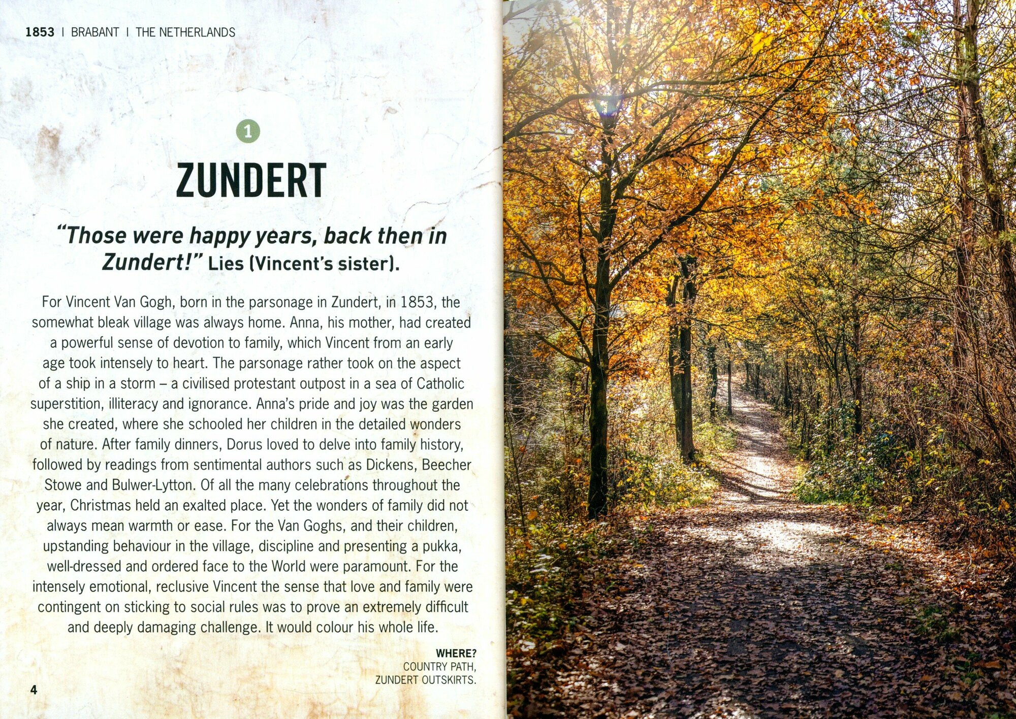 We capture the mood of bourgeois respectability of his mother's family in The Hague, the fields and dyke banks of the sleepy provincial town of Zundert on the Dutch/Belgian border where he grew up, to the boarding schools which he hated. We go with Vincent to The Hague where he was an apprentice art dealer, to his time in England and his dreams of maybe escaping to South America, Brussels, Antwerp, Paris and then to all the detailed locations in Provence, and many more.