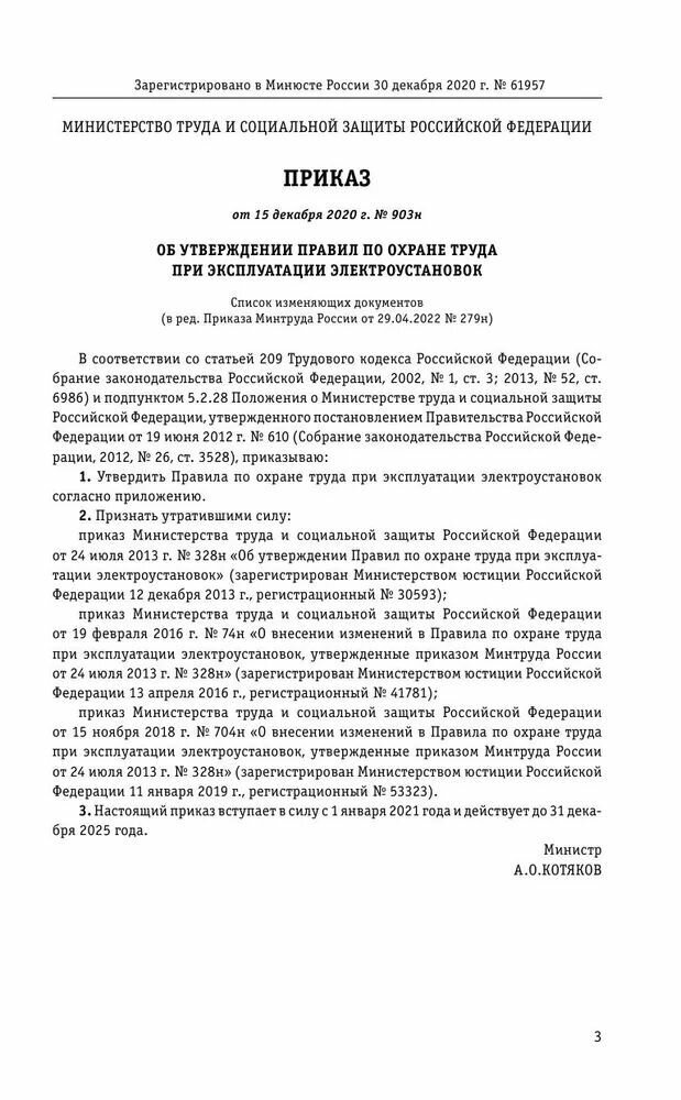 Настоящее издание содержит текст приказа Министерства труда и социальной защиты Российской Федерации от 15.12.2020 г. №903н "Об утверждении Правил по охране труда при эксплуатации электроустановок".