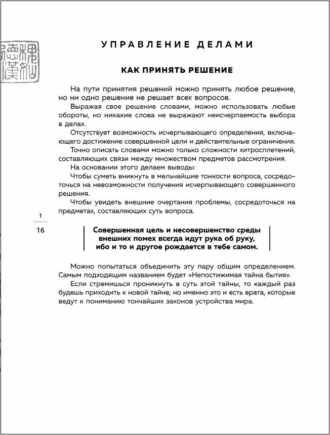 Новое издание книги известного эксперта по Китаю, писателя, художника и переводчика Бронислава Виногродского посвящена структуре управления, а именно получению предсказуемых плодов воздействия на три стороны реальности: на дела, обстоятельства и состояния. Парадоксы здесь соседствуют с ясными указаниями, а глубокая мудрость - с поэтическими образами.