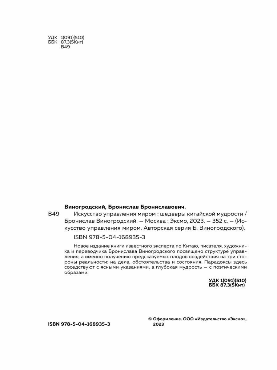 Искусство управления миром. Шедевры китайской мудрости (Виногродский Бронислав Брониславович); ООО "Издательство "Эксмо", 2023