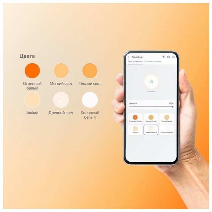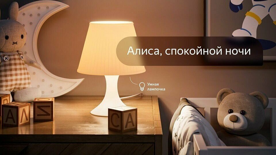 Умная лампочка Яндекса – прекрасное решение для тех, кто только планирует создание системы умного дома, и тех, кто желает расширить его функционал.Лампа подключается по Wi-Fi через приложение Умный дом с Алисой и может управляться как с помощью голосового помощника Алисы через умную колонку Яндекса, так и реагировать на команды, отданные по мобильному приложению. К тому же есть возможность настройки работы лампы в рамках запланированных сценариев, включая и выключая свет по таймеру или сигналу включённых в систему датчиков.Стандартный цоколь Яндекс Лампочки E27 обеспечивает широкий спектр применения и стандартную установку. Номинальной мощности в 8 Вт и светового потока в 806 люмен достаточно для яркого и приятного глазу освещения комнаты, а возможность регулировать цветовую температуру от 2700 до 6500 К позволит создать тёплое мягкое освещение для романтичного вечера или холодный свет для продуктивной работы.