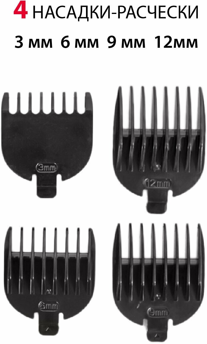 | Комплектация | гребни для стандартного триммера - 4 шт., гребень для малого триммера, гребень для вертикального триммера, вертикальный триммер, расческа, насадка для носа и ушей, триммер для дизайнерской стрижки, масленка, адаптер питания, щеточка для очистки лезвий, подставка для хранения прибора, USB кабель для зарядки |