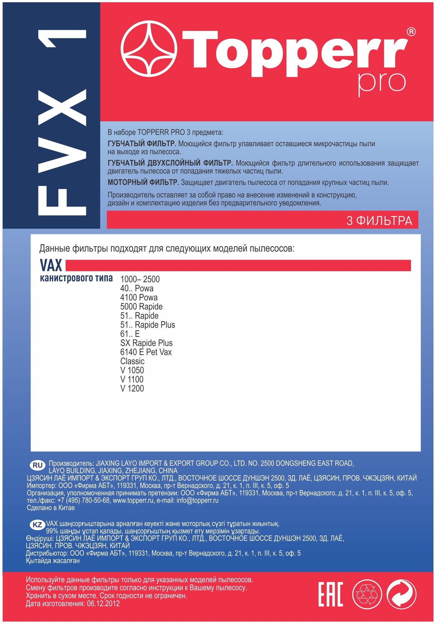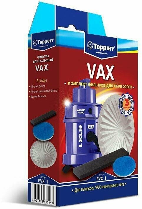 | Совместимость | VAX канистрового типа серий VAX 1000 - 2500, 51.., Powa 40.., 41.., 5000, Rapide 51.., Rapide Plus 51.., 61.., 61..Е, SX, Pet Vax 61..Е , Classic, V 1050, V 1100, V 1200 и аналогичные |