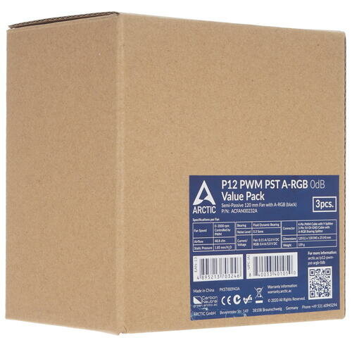 ВентиляторArctic P12 PWM PST A-RGB White, артикул ACFAN00254A — это все тот же отличный корпусный кулер P12, но теперь с адресуемой RGB подcветкой. Широкий диапазон оборотов от 0 до 2000 об/мин можно плавно и синхронно регулировать совместно с другими вентиляторами благодаря технологии PWM Sharing Technology (PST) от ARCTIC. Также, вы можете приобрести набор из трех вентиляторов в комплекте.