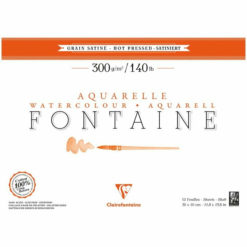 Альбом-склейка для акварели Clairefontaine "Fontaine Grain satin" Сатин 30х40 см 12 л 300 г горяч. (96351C)