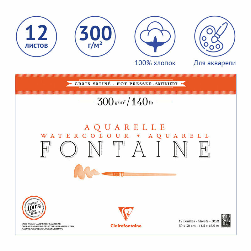На сегодняшний день товар «Альбом-склейка для акварели Clairefontaine "Fontaine Grain satin" Сатин 30х40 см 12 л 300 г горяч. (96351C)» можно купить с кешбеком в 1 магазине: Арт-маркет "Красный Карандаш"